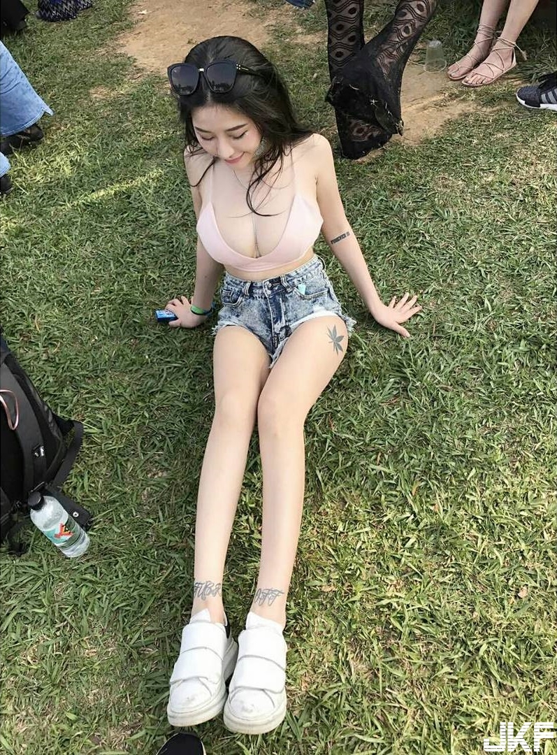 上周末在桃園舉辦的樂托邦國際音樂季,是台灣原創國際電子音樂季,吸引不少外國人來朝聖,這次發現香港巨乳嫩模黃芷嫣也來了!只穿著粉色細肩帶配上超短熱褲的黃芷嫣,衣服快承受不住她的超大乳量,肩帶好像快斷了!